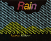 Blue sky. Yellow sun. White clouds. Then, suddenly, gray clouds. Gray sky. RAIN. Using bold graphics ...