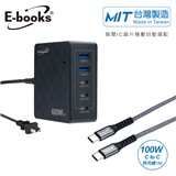 B76 60W長線型五孔快速充電器+100W 鋁合金C to C快充傳輸線組【E-books】