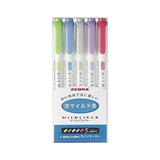 MildLiner柔色系雙頭螢光筆5色組/淡色系【ZEBRA 斑馬】