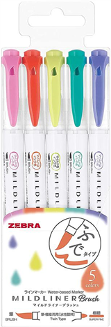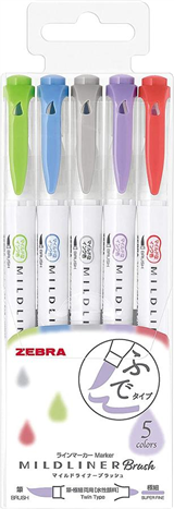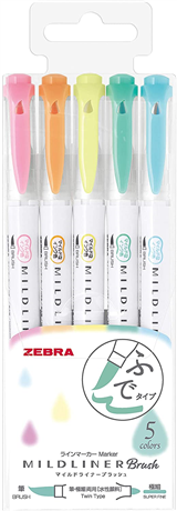 Mildliner Brush雙頭彩繪筆/毛筆型螢光筆WFT8-5C/淡柔色/5色【ZEBRA】
