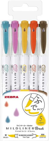 MILDLINER筆刷可以與蓬鬆型筆和超細圓形筆尖配合使用的兩用筆輕度墨水顏色線標記筆●一種適用於粗(畫筆類型)和細(普通螢光筆的超細類型)●油墨:水性顏料●五種不同色系包裝(淡柔系、晴空系、親和系、 ...