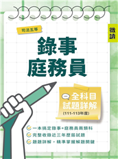 司法五等錄事/庭務員全科目試題詳解 (111-113年度) (國文/公民/英文/民事訴訟法大意與刑事訴訟法大意/法學大意/法院組織法大意735題)