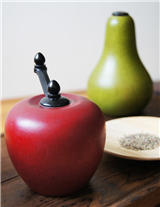 以東勢地區產出的水果為設計概念,結合地區木工師傅的手藝與五金零件,完美呈現可愛又溫馨的果實餐具器物。蘋果把手為黑色西洋梨,上蓋為銀色金屬色. ...