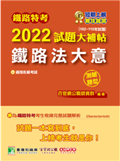 【試題大補帖系列熱賣中!】 不容錯過的上榜必備好書在這裡! 精選多年度鐵路特考歷屆試題,讓你省去到處尋找考古題的煩惱! 試題按照年度排列,迅速掌握出題方向 每道題目提供完整解析,測驗、複習一把罩 本書 ...