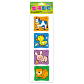 本產品正面是以農場動物(乳牛、鴨、兔子、貓)為主,包含4、5、6、7等四種片數拼圖,背面則是塗色遊戲。拼圖色彩鮮明,造型可愛,讓孩子從拼合的過程中了解部分與整體的概念,訓練手部小肌肉的發展,增進手眼協 ...