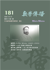 p.3 康明昌/Felix Klein (1849~1925)p.21 張鎮華/Alon的組合零點定理p.33 廖信傑、薛昭雄/一元三次方程式的再探p.40 余家富、洪梵雲/高斯虧格理論p.64 陳博 ...