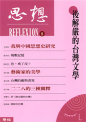本期《思想》邀請四位作者,針對「後解嚴的台灣文學」展開討論。我們所關心的,當然不是解嚴這個具體事件本身,而是這個社會一旦擺脫了威權政治所施加的束縛禁錮,前路操之在己,成敗得失要由自己負責了,其成果就格 ...
