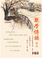 本期精彩內容有朋自遠方來—專訪Charles Newman教授曲面幾何與廣義相對論n元算幾不等式的一個幾何證明參與Nicolas Bourbaki的二十五年(1949~1973). ...