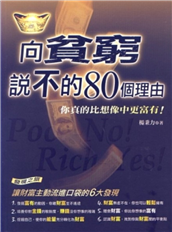 做個有錢人真的很容易 改變觀念,改變您對金錢的認知 您的人生就會跟著改變 向貧窮說不,財富自然會找上您 本書公開創富的六大觀念 幫您找到向貧窮說不的80個理由 要您別急著當窮人 再試一下,您真的比想像 ...