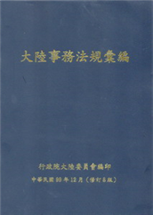 本彙編係「修訂9版」,就當前大陸工作經常適用之法規,包括台灣地區與大陸地區人民關係停條(以下簡稱兩條例),及香港澳門關係條例相關之法律、法規命令與行政規則彙編而成. ...