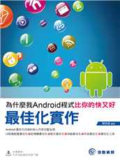 Android 最佳化技術的核心內容完整呈現,UI版面配置最佳化+記憶體最佳化+程式最佳化+效能最佳化+系統最佳化+最佳化工具。本書將Android最佳化技術的核心內容展現給讀者。全書循序漸進、詳細地 ...