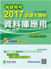 高普特考2017試題大補帖資料庫應用,收錄近6年高等考試、關務特考、調查特考、鐵路特考、國安考試、地方特考等資料庫應用與資歷庫應用概要試題,由專業師資精密解題,是專為考生打造最新年度的歷屆試題總整理, ...
