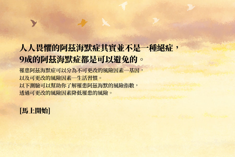 - 如果你因為有高血壓和高膽固醇,或甚至罹患糖尿病和心臟疾病,而擔心你的腦部健康,我們的全方位計畫會告訴你每一種慢性疾病的危險因素,包括阿茲海默症和其他類型的失智症。