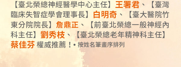- 如果你有親人罹患阿茲海默症,你想幫助他們延緩症狀的進展,你從本書獲得唯一可靠的解決方案。
