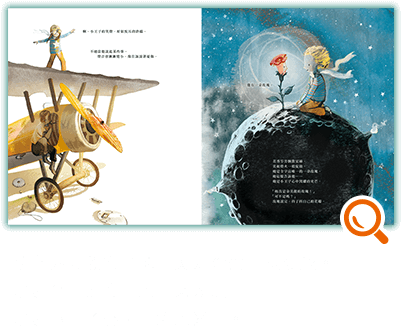由Louise Greig改編、Sarah Massini繪圖的《小王子》圖像充滿瑰麗的光,循著一束束的光,將我們帶進小王子的星球旅行;熟悉的文字內容引領我們回憶起曾經與小王子的對話,此刻,似乎可以告訴那位飛行員:小王子回來了!