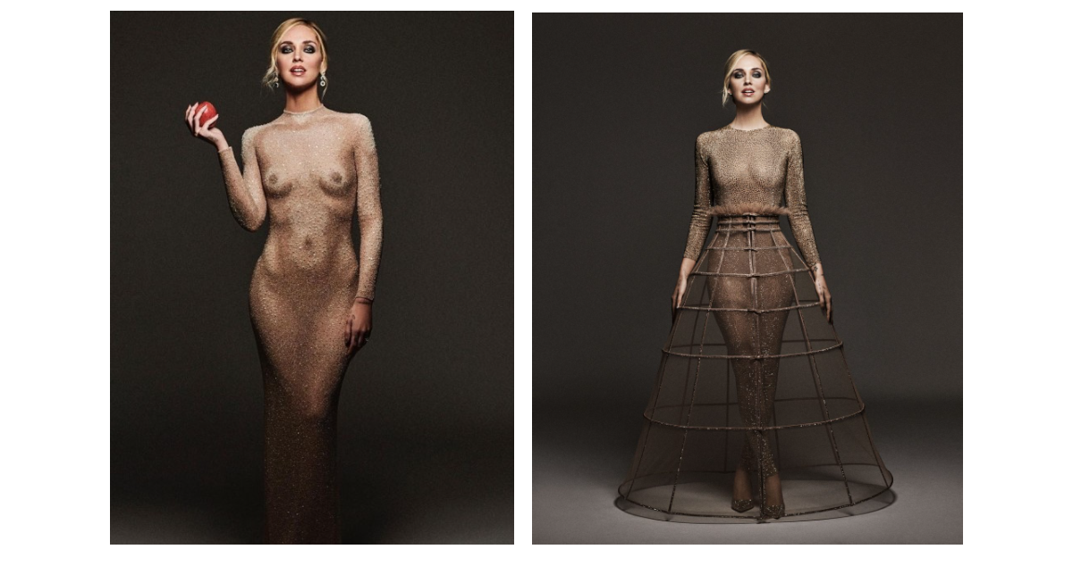 2023年義大利時尚KOL Chiara Ferragni出席Sanremo音樂節,總共換了4套禮服,這是其中2套「無恥之裙」(The Shameless Dress)與「牢籠」(The Cage)。