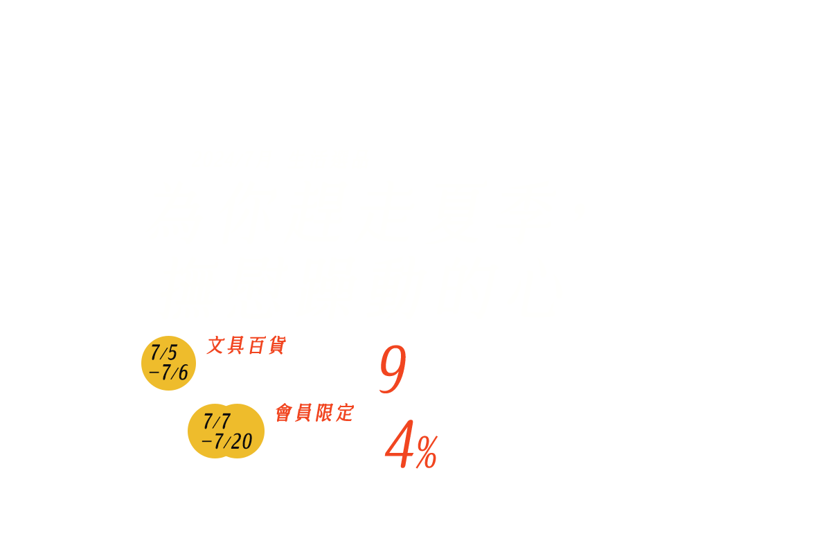 2.單筆訂單折扣後,指定館別:創意文具、生活百貨,實際消費金額滿NT$888元,在購物車結帳完成訂購步驟時現打9折。