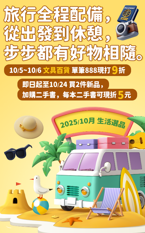 1.活動期間內(2025/10/5~10/6),單筆訂單折扣後,指定館別:創意文具、生活百貨,實際消費金額滿$888,在購物車結帳完成訂購步驟時現打9折。
