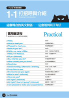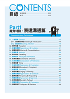 █ 第一階段:看中文對話思考英文說法此階段的會話主題是【表達溝通】,共有20種情境、148組對話、搭配283個實用短句。不再依賴單字,直接藉實用短句加強正確句型的概念,訓練英文流暢的聽說讀寫完整句型及語感。