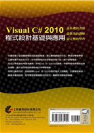 ‧ 採用以圖例方式,詳細說明Visual C# 2010在程式寫作上的要點。只要循序漸進,跟著本書的說明,即可學習到撰寫程式的技巧,體驗程式開發的樂趣。