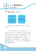 以貼近生活、常用的句型來學習,在「基本句型」章節學習「在什麼時候做什麼事情要怎麼說(常用動詞時態的用法)」;在「6W1H」章節學習「關於人、事、時、地、物、為什麼、如何的問句」;在「感謝、祝福、道歉」章節學習「生活中一定會遇到表達感謝、祝福、歉意的句型」;在「句首、感嘆、發語詞」章節學習「祈使句、感嘆句的用法」;在「表達想法、意見」章節學習「主觀表達意見的句型」;在「描述情況」章節學習「描述自己以外人事物情況的句型」;在「詢問」章節學習「禮貌性詢問他人選擇、意見,或徵求他人同意的句型」;在「建議、假設、比較」章節學習「表達建議、假設性、比較等級的句型」。