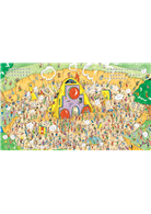 一艘從天而降的飛碟來到寧靜的村莊,村莊裡一下子來了好多的地球人和宇宙人。壞掉的飛碟需要大家幫忙修理,在各司其職、同心協力下,飛碟終於成功重新打造出來了。這本充滿了美式漫畫風的繪本,繪者用心鋪陳了各種各樣的人,密密麻麻的人當中有宇宙人船長、博士,也有護士、廚師……等,每個人都有自己的才能,各個頁面忙碌的畫面也營造出歡樂、熱鬧的氣氛。