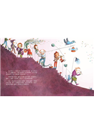 除此之外,繪者還加入了許多有趣的細節,例如:畫家的窗欄是由一支支的畫筆組成的,或者許多動物和靜物的表情,使得畫面非常活潑、具幽默感。到了最後,畫家展出的那一幅<無花果香吻>尤其精采,讀者不妨慢慢欣賞這幅抽象畫,看看會聯想到哪些氣味?