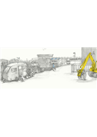 小白狗的主人是開挖土機的建築工人,小白狗和主人住在工地附近,每天牠都陪伴在主人的駕駛座旁,和他一同工作。每當吃飯時間到了,他們就會到鄰居的咖啡車吃飯,享受快樂放鬆的時光。但是有一天,鄰居養的小狗不見了,在這麼大的工地裡,小狗到底躲到哪去了呢?一行人著急地四處尋找之後,發現牠竟困在危險的大水溝旁,最後靠著勇敢又機智的小白狗,終於解救了小狗,化解這次的危機。本書是用生動圖畫來說故事的無字繪本,可以讓大家盡情發揮想像力!。