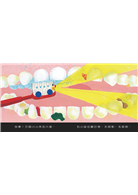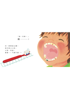 原來是牙刷化身成小火車,打開大燈照著嘴裡的菜渣、玉米粒,多虧有刷牙號小火車,口腔一下子就清潔溜溜了。啊,可是頑固的肉渣卡住了,怎麼弄也弄不掉,該怎麼辦呢?