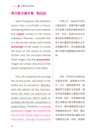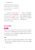 In conclusion, I disagree with the statement because it undermines7the diversity of the media. It is not the media’s job to instill8 concepts into us; rather, it is the viewers’ job to search for meaning. 乍看之下,敘述似乎是句正當的批評,考慮到當今媒體充斥著暴力和幾近傷風敗俗的內容。然而,我認為在民主社會有限的媒體審查制度之下,深入探討畫面背後的觀念並不是媒體的責任,而且聳動的畫面只是顯示媒體蓬勃的競爭現象。