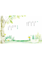 新銳插畫家盧貞穎讓這隻蝸牛擔任詩集導覽,在每個跨頁裡都可以尋找蝸牛身影,帶讀者進入一首一首的詩:有林良爺爺只用21個字寫的短詩、僅用12個不同的字創作的詩、一句話寫完卻色彩斑斕的詩;還有詩人眼中的可愛動物、可親大自然、純真孩子和甜蜜生活……。