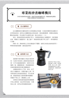 本書介紹了各種烘豆和沖煮咖啡器具的功能,以及手沖壺、濾壓壺、聰明濾壺等各式沖煮咖啡機具沖泡步驟和特色風味描述。