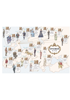 (1)前拉頁地圖:為打造「不出國就能閱覽天下事」的情境,藉由地圖上的地域國別、文學家插畫、經典名著等,讓你對號入座認識名家經典文學。