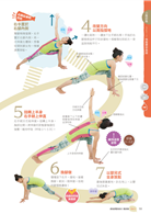 當身體因過勞處於緊張狀態下,就算做了瑜伽,也無法伸展身體得到舒緩。因此,前2分鐘是「放鬆」的動作,柔軟身體的活動力,接下來的2分鐘是「調整」動作,矯正左右歪斜現象,最後2分鐘是「收緊」動作,強化鬆垮的體型。