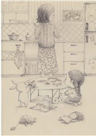 充滿愛和暖意的復古細緻鉛筆畫,是來自於韓國插畫家Coniglio的創作,她曾在義大利生活四年,為了緩解鄉愁思緒,開始創作鉛筆插畫。以少女和她的可愛朋友兔子為主角貫穿全書,兔子是孤獨少女的玩伴,是她最喜歡的小動物,而她的筆名Coniglio就是義大利語中「兔子」的意思。