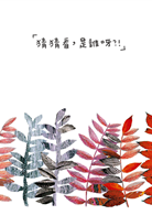 「是誰呀?」透過這個問句創造出綠色的想像世界的小孩,他想像世界中的秋天是什麼樣子呢?在色彩斑斕樹葉間,是否會出現一兩個想見面的對象呢?想像並畫出這些讓人興奮開心的會面情景,就好像變回孩子般快樂。