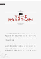 證券投資書籍愈來愈像電視廣告及犯罪漫畫。大多數人以為這類書刊早已太過泛濫,因此,在原已汗牛充棟、相互矛盾、令投資人不知所措的股票投資建議之外,我仔細考慮過本書的內容,是否可以減少混淆或只是徒增投資人困擾。兩年前,我為這個早已擁擠的領域增添了一本書,我會這麼做,是因為相信我的書提出了需要說明的投資理念,至今我仍這麼相信著。該書引發的熱烈迴響,證實了這項結論。但現在再寫第二本書,除了讓這個領域更加擁擠之外,是否還有其他作用?會不會像是在已有20種香皂品牌的市場上,新增另一個品牌?