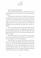 first few whirls around, and one other time when the house tipped badly, she felt as if she were being rocked gently, like a baby in a cradle.