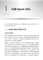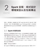 第2 章透過說明Spark SQL 開發環境的架設、Spark 作業的包裝傳送、常見問題的解答,並結合大量圖示,讓讀者快速掌握開發環境的架設以及傳送應用程式到叢集上,為後面章節的學習奠定堅實的基礎。