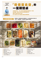 本書所介紹的料理共有168道,多是以微波爐加熱就能吃的為主,而且是短時間就能做好的簡單菜色,非常適合手邊只有瑣碎的時間能應用,或是家有小小孩的人使用。只要有常備菜這個法寶,三餐短短10分鐘就能搞定,能自由組合又很好吃的菜色真的能幫上大忙喔。烹調工具除了微波爐,還活用了廚房剪刀以及塑膠袋,加上「一盤式」的盛裝,省去了不少要洗的鍋碗瓢盆喔!