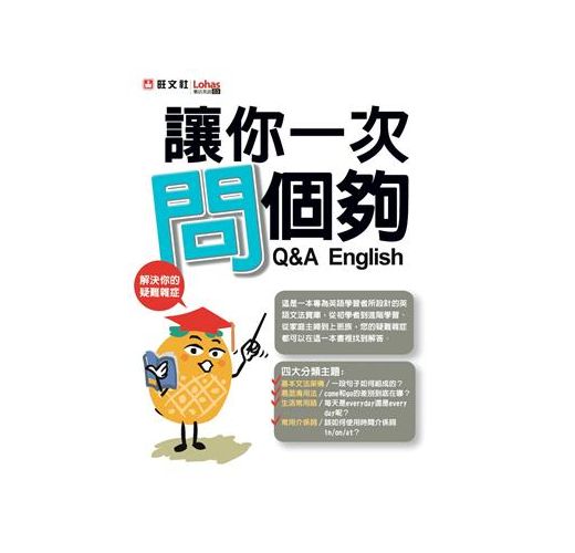 這是一本專為英語學習者所設計的英語文法寶庫,從初學者到進階學習、從家庭主婦到上班族,您的疑難雜症都可以在這一本書裡找到解答,書中的解說和建議都是為了幫助讀者了解方法、認識文法所寫的,只要讀完本書,那些難懂而討厭的文法就會變得異常簡單。4大分類主題基本文法架構/一段句子如何組成的?易混淆用法/come和go的差別到底在哪?生活常用語/每天是everyday還是every day呢?常用介係詞/該如何使用時間介係詞in/on/at?