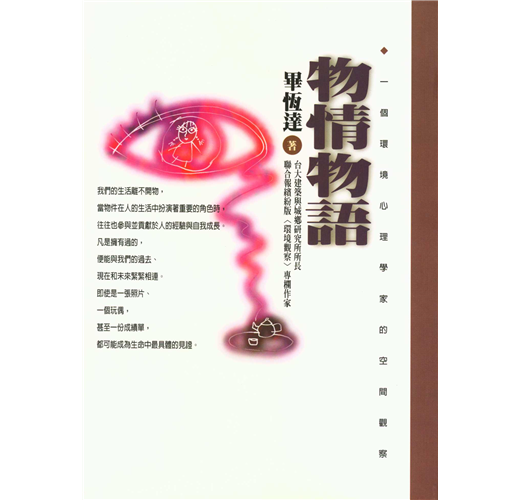 本書為一個環境心理學家的空間觀察。作者畢恆達教授現任台大建築與城鄉研究所所長,畢教授在人與物的親密連結中,尋找物情:從一只玩偶可以看出主人的喜好與性情;從收音機頻道的設定,可以推斷人們的興趣或政黨選擇;從汽車擋風玻璃上蟲子被撞死的樣子,可以判斷汽車的車速……諸如此類,在在顯示畢教授對空間環境的高度感情與細微觀察。