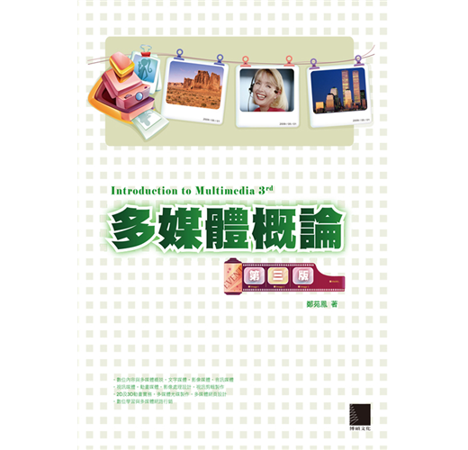 基礎入門篇第1章數位內容與多媒體概說第2章文字媒體第3章影像媒體第4章音訊媒體第5章視訊媒體第6章動畫媒體軟體操作篇第7章影像處理設計第8章視訊剪輯製作第9章2D及3D動畫實務整合應用篇第10章多媒體光碟製作第11章多媒體網頁設計第12章數位學習第13章多媒體網路行銷