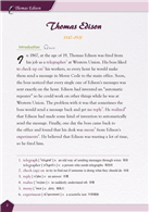 想到愛迪生就想到電燈泡,不過電燈泡卻不是這位夢羅園實驗室負責人,綽號發明大王的愛迪生所發明的。如同其它各式各樣的發明一般,愛迪生並非無中生有,而是根據前人的研究成果,將諸多發明改良得更有效率、更具市場價值。這位一向活力充沛、富實驗精神的發明家,經他改良過後的東西不計其數,大大改變了當時人們的生活,譬如發報機、留聲機,甚至電池等,影響甚至及於當代。愛迪生自小便立志發明人人都用得著的事物,而他果然也做到了!閱讀本文,讀者將發現更多愛迪生小時候不為人知的趣事。看他如何因為做實驗闖禍而被大人修理,如何被學校老師辱罵白痴,又如何一路從身無分文的窮小子搖身一變成為發明大王、人人欽佩的『夢羅園魔術師』。