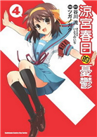 漫畫:ツガノガク原作:谷川流角色設定:いとうのいぢ「這可是大事一件呢!」某起事件的委託翩然降臨SOS團,那就是要找出行蹤不明的電腦研究社社長。由於春日自信滿滿地拍著胸脯掛保證,SOS團的團員們只好一同隨著前往搜索。不過,解決的關鍵竟然是在意想不到的地方。原來春日畫的SOS團團徽才是這整起事件的元兇……。微妙的非日常系學園故事第四集發行。(c)NoiziITO2007(c)GakuTSUGANO2007
