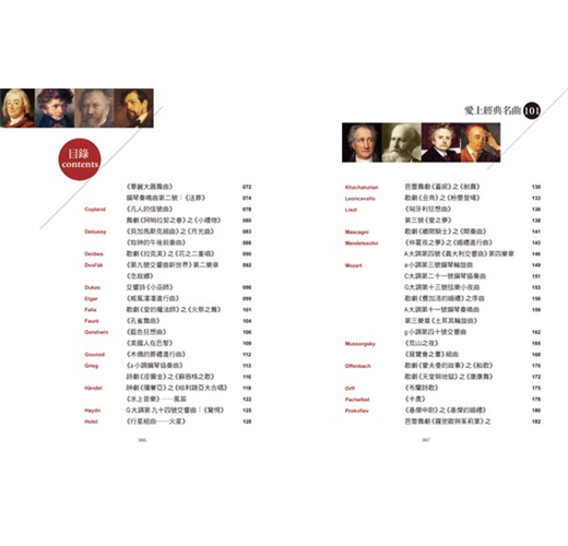 我們特別為讀者挑選出101首,大家經常在街頭巷尾中聽得見的的古典音樂,這些旋律優雅、甜美且膾炙人口的古典音樂,有些經常在廣告片段中出現,有些則成了電影裡的主題音樂或精彩配樂。它們的經典旋律主題,幾乎每個人都能哼上幾個小節。