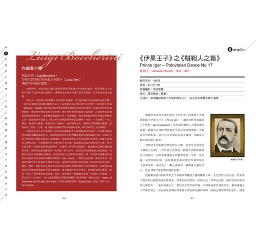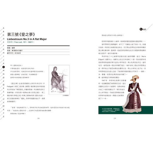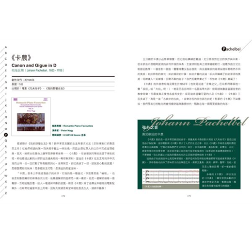 書中精選101首歷久不衰的古典音樂,時至今日,這些旋律在街頭巷尾中仍然不時響起。這些旋律優雅、甜美且膾炙人口的古典音樂,有些經常在廣告片段中出現,有些則成了電影裡的主題音樂或精彩配樂。它們的經典旋律主題,幾乎每個人都能哼上幾個小節。
