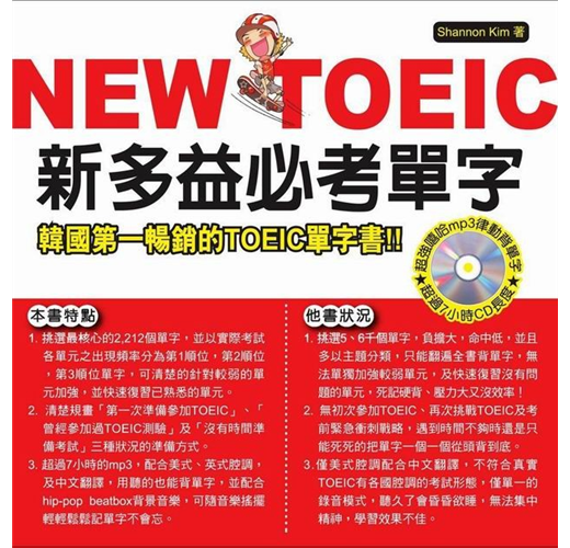 ★由於本身同時接觸過韓國和美國兩地的英文學習法,所以非常熟悉美國當地的TOEIC出試方向以及韓國人學英語的盲點,比誰都要出類拔萃的TOEIC專家。本書為應合TOEIC試題方向,為讀者提示了單字的出題率和活用於文章的頻率。