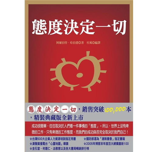沒有卑微的工作,只有卑微的工作態度,而我們的工作態度完全取決於我們自己。現實生活中,每個人所做的工作,都是由一件件的小事所組成,因此我們不能忽視工作中的小事。所有的成功者也都與我們做著同樣簡單的小事,唯一的區別就是,他們從不認為他們所做的是簡單的小事。簡單說;決定成功與失敗的原因,態度比能力更加重要。 美國成功學家格蘭特說;「如果你有自己繫鞋帶的能力,你就有上天摘星的機會!一個人對待生活、工作的態度是決定他能否做好事情的關鍵。」每一個人在一生中都會或多或少、或輕或重地犯錯誤、做錯事情。從某種意義上說,錯誤是不可避免的,它將伴隨你一生,無論你願意還是不願意。 重要的是無論你做錯了什麼,只要敢於承認錯誤、承擔責任,採取措施彌補,你還是可以成功。本書含括了許多被忽略的一些觀念,推薦給所有願意轉變的企業、個人做最佳參考。 想想今天世界上最成功的那些人,有幾個是唯唯諾諾、等人吩咐的人?對待自己的工作和事業,你需要以一個母親對孩子那樣的責任心和愛心全力投入及不斷努力。 永遠比老闆更積極主動,果真如此,便沒有什麼目標是不能達到的。 最後本書歸納出五個章節如下; 第一章 態度決定一切。 第二章 不要為自己找任何藉口。 第三章 養成積極主動的習慣。 第四章 這種事,不用老闆交代。 第五章 把信送給加西亞。 現今社會價值觀隨著大環境的改變而改變,而我們往往忽略了一些基本卻影響我們一輩子的重要元素--觀念,這些看似微不足道的「觀念」卻都能讓我們在面對生活上的各種可能試煉時,從裡到外產生決定性的轉變與人生的轉捩。 這本書要傳達的是一個再簡單不過的觀念--「態度」。成功很簡單,往往取決於人們看一件事情的「態度」。所以,世界上沒有卑微的工作,只有卑微的工作態度,我們的成功與否完全取決於我們自己!本書最強的特色就是;文字凝練、篇幅簡潔、言簡意賅,讀者利用極有限(或片段切割)的時間便可輕鬆閱讀,不需揣度艱澀的學術或翻譯語言,閱讀成就感極高。 另一個特色是;本書已是一本著名企業的員工培訓寶典,書中不斷的提醒我們一個人對待生活、工作的態度是決定他能否做好事情的關鍵,不僅為全球知名企業摘為企業人才培訓重要參考規臬,中文平裝本更已成為台灣前百大企業、國軍、公家單位指定之自我提升讀物,書中所提重要觀念已為重要社會重要政經領袖所推薦、引用,值得讀者將之內化為成長的助力。 重要紀事 ☆台灣500大企業人力資源培訓指定用書。 ☆國防部選為「連隊書香」指定書籍。 ☆漢聲廣播電台「心靈地圖」導讀。 ☆2005年博客來年度百大網獨喜新100。 ☆金石堂、何嘉仁、法雅客以及各大書局暢銷排行榜。 ☆花蓮縣府評選為最佳讀物。