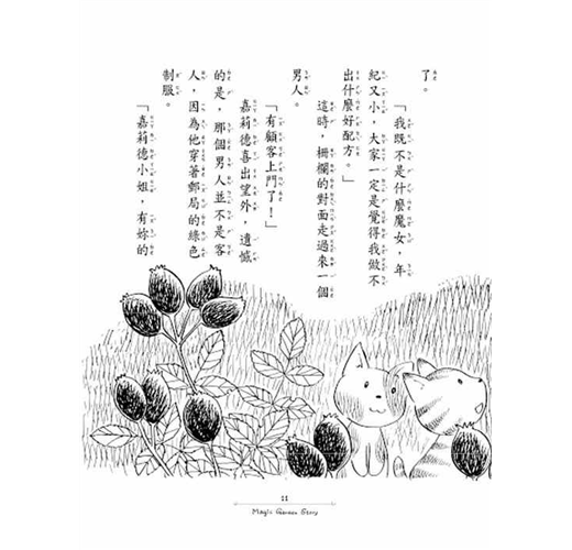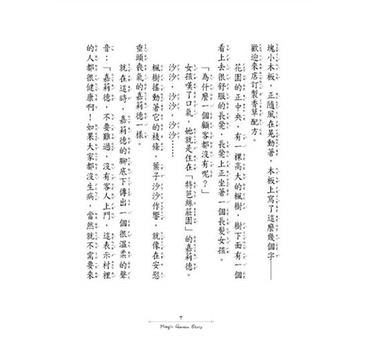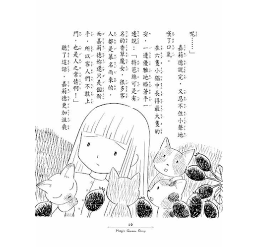 就在嘉莉德忙著低頭採收種子的時候,聽見花園的柵欄「呀」的一聲被推了開來。嘉莉德抬起頭,只看到一個年紀和自己差不多的女孩子,走進魔法香草花園。
